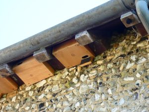 The Wildlife Trust scheme requires us to maintain a compost heap to attract small mammals and reptiles, boxes for birds and bats to nest in, and areas of grass which are only mown at certain times of the year so that wildflowers can thrive and set seed. We hope that we will eventually have a flowery meadow.